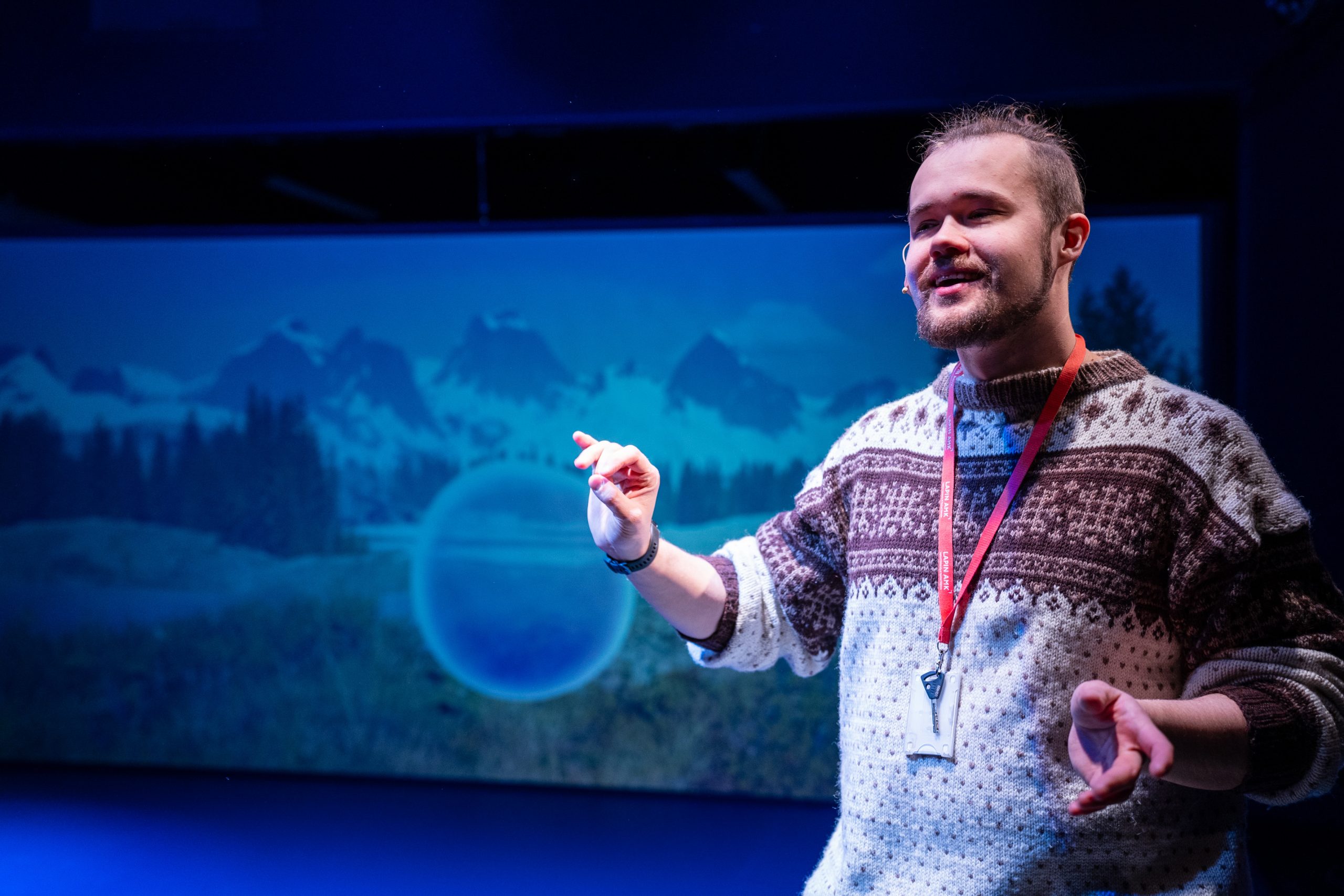 Virtuaalinen roolihahmo näyttelee Rovaniemen teatterin nuortennäytelmässä