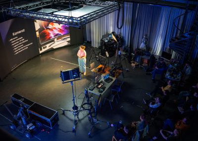 Työpaketissa tutkittiin virtuaalituotantoteknologian käyttöä suoratoistetuissa lähetyksissä. Avea Median kanssa toteutettiin yhteistyössä työpaja, jossa testattiin virtuaalituotannon käyttöä monipuolisissa suoratoistoratkaisuissa. Lisäksi työpaketissa testattiin erilaisia taustoittamis- ja valaisuratkaisuja useissa erilaisissa suoratoistetuissa lähetyksissä hankkeen aikana.