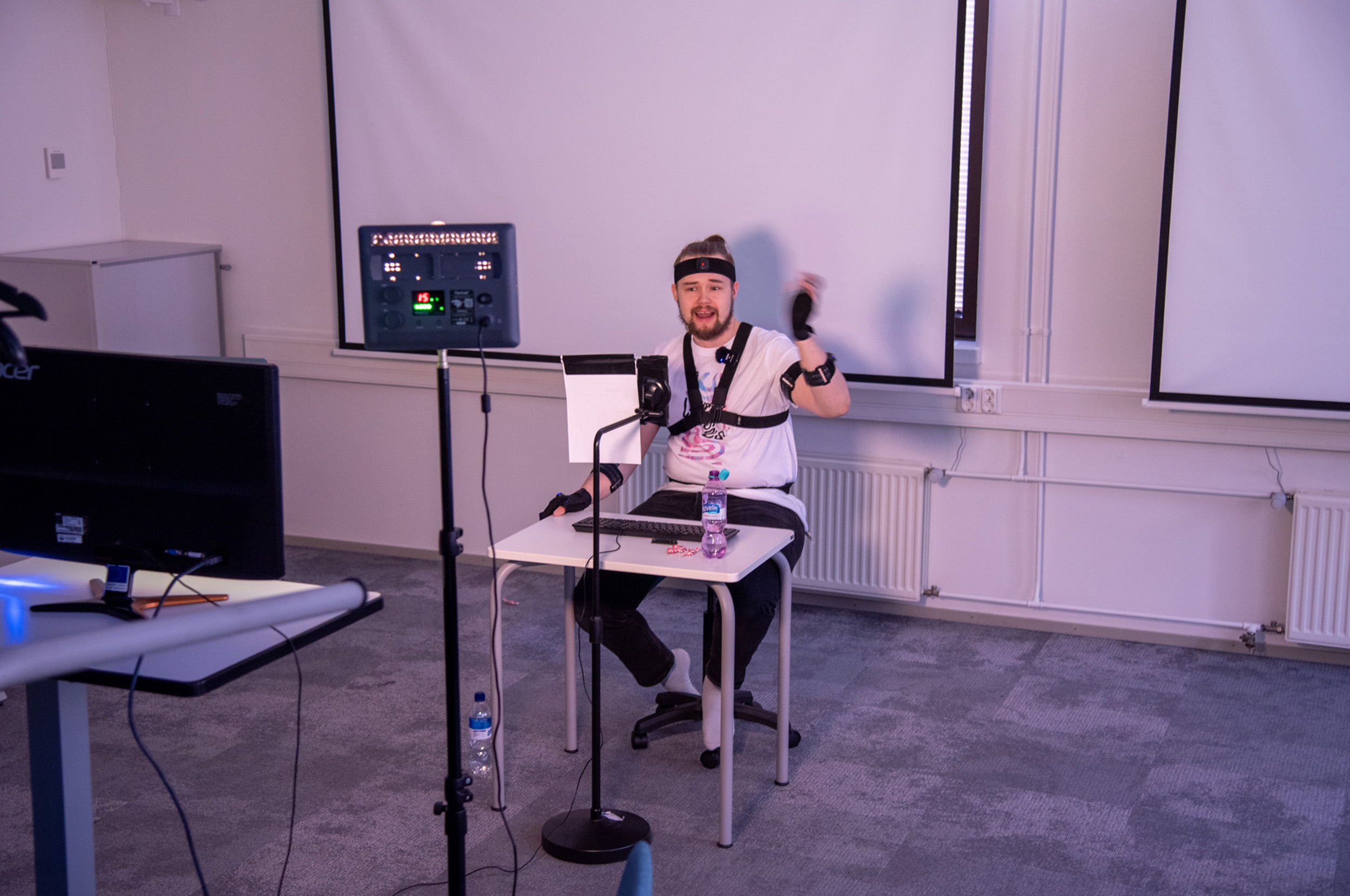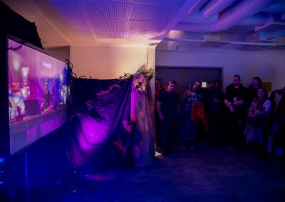 Työpaketin sisällä VTST-hanke halusi testata eri liikkeenkaappausmetodeja ja hahmomallien luomista. Olimme Lapin ammattikorkeakoulun TEQU:n järjestämillä bisnesfestareilla mukana testaamassa ja esittelemässä reaaliajassa liikuteltavaa, nopealla aikataululla toteutettua hahmodemoa. TEQU-Tonttu nimellä kulkeva demo oli muutamassa päivässä toteutettu kokeilu luoda satumaailman hahmo, joka pystyi Perception Neuron -liikkeenkaappauspuvun avulla reagoimaan festarikävijöihin reaaliajassa.