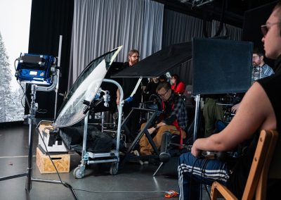 Kuvaukset pidettiin Lapin yliopiston virtuaalituotantostudiossa ja ne toteutettiin virtuaalituotantona. Kuvauksia varten toteutettiin kolme eri Unreal-ympäristöä, joita käytettiin kuvausten taustoina. Hankkeen sisällä ympäristöillä testattiin erilaista tapoja luoda nopeasti tiloja sekä sekä LED-paneelien hyödyntämistä arkkitehtuuristen tilojen luomisessa.