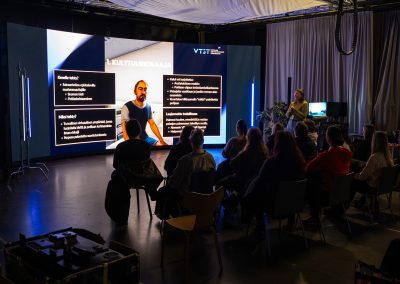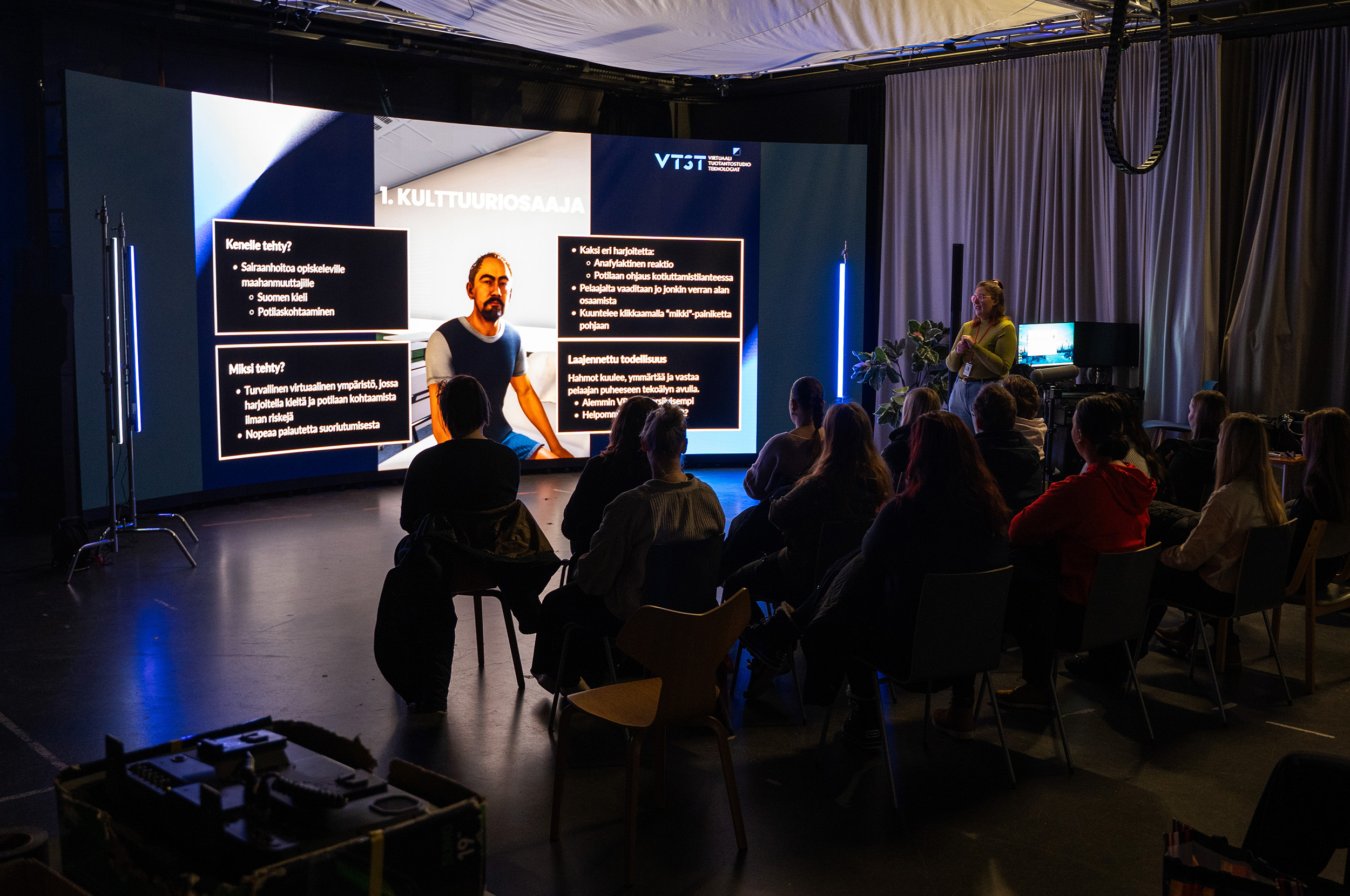 Työpaketin tarkoituksena on jatkokehittää virtuaalituotantostudiota hyödyntäen toiminnallisia koulutusskenaarioita sairaanhoitajakoulutuksen käytettäväksi, joissa on mahdollista testata käyttäjäkokemuksia sekä vuorovaikutuksen toteutumista. Simulaatioiden esittelyssä tutkitaan LED-näyttöjen, virtuaalilasien sekä liikealustojen hyödyntämistä oppimisympäristön tukena.